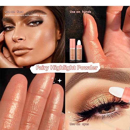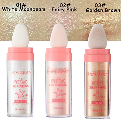 2 PCS Polvo De Hadas HANDAIYAN Fairy Highlight Patting Powder Highlighter Stick Highlighter Body Brightens the Natural Three-dimensional Face Powder Blusher (03# Golden Brown)