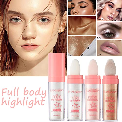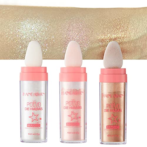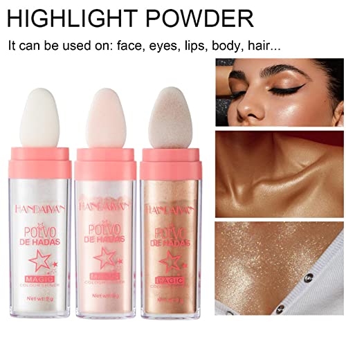 3 Colors Face Glitter Highlighter Powder, Highlight Patting Powder, Highlighter Glitter Face Powder Blusher, Fairy Highlight Patting Powder for Face Body