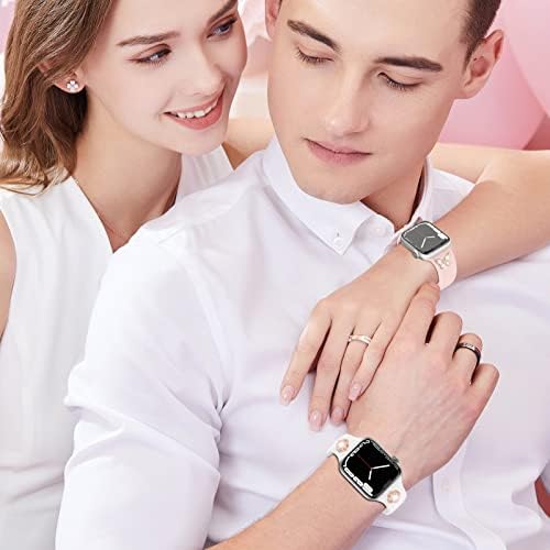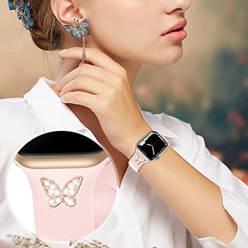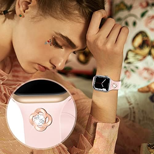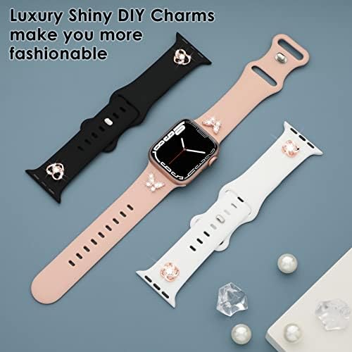 ✅【Excellent Quality】These bands for apple watch are made of premium soft silicone, flexible, waterproof, dirt-proof, breathable, durable and lightweight. The iwatch bands charms are made of high-quality metal materials, very strong, durable, shiny and no-fade, fashionable and skin-friendly. provides comfortable and gentle feeling for your wrist.