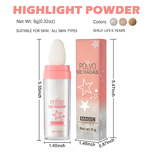 [3PCS] Erinde Polvo De Hadas Highlighter Powder, Body Glitter Highlighter Makeup Stick, Face High Gloss Sparkle Loose Highlight Powder, Brightens Makeup Stick for Face Body Hair Cosmetic