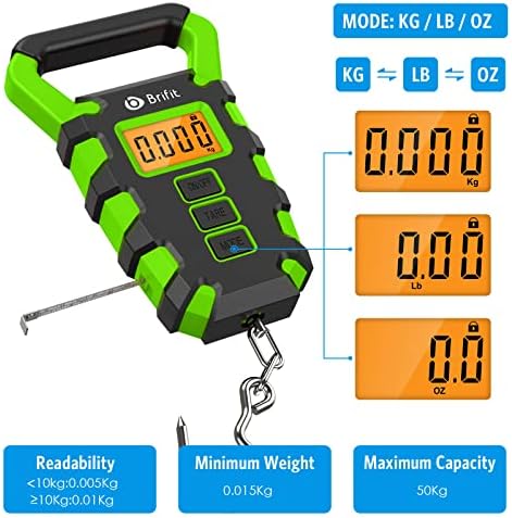 🐟Backlit LCD Screen Display & Lb/oz/Kg Mode: Large digital LCD display make it easy to read and use this fishing device both at day and night. Measuring Range From 0.6 oz to 110 Lb. Weighting unit include Kg/LB/OZ You can Press ‘MODE’ key to select the weighting unit you need
