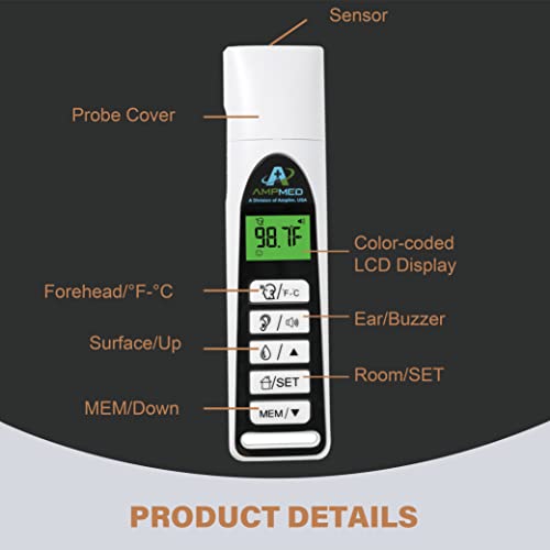 Use of this thermometer is not intended as a substitute for consultation with your physician. Note: It is clinically verified that the forehead temperature is about 0.5-1.0 F lower than an oral temperature. Average normal forehead temperature is around 97.1 – 98.9 F. Please contact customersupport@amplim.com if you have any product issues. Be assured we will provide support. This thermometer provides the best results with contact or less than 0.5” non-contact from the forehead.