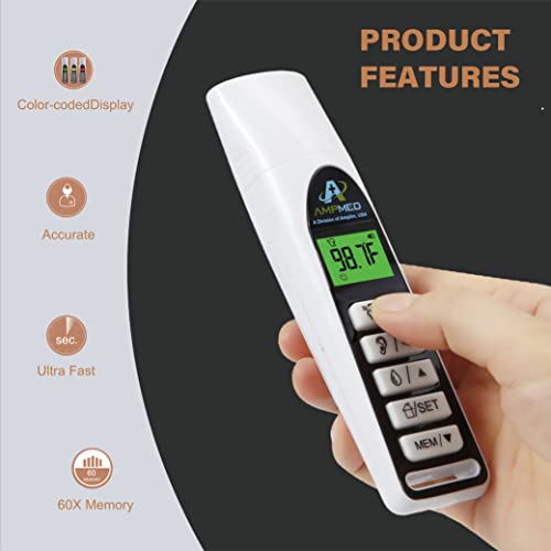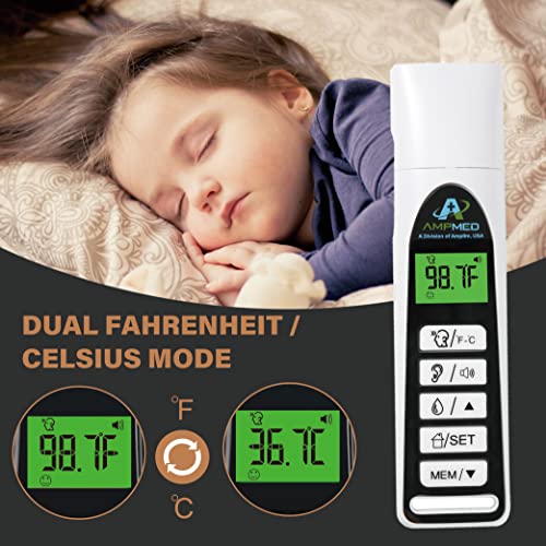 Amplim No Touch Professional Forehead and Ear Thermometer | Non-Contact Digital Baby Thermometer for Kids Adults Infants Toddlers | Touchless Temporal Thermometer FSA HSA