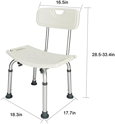 Bath Chair with Back, Shower Chair has Height Adjustable Legs, Shower Seat with Suction Cup Feet for Elderly, Senior, Handicap & Disabled