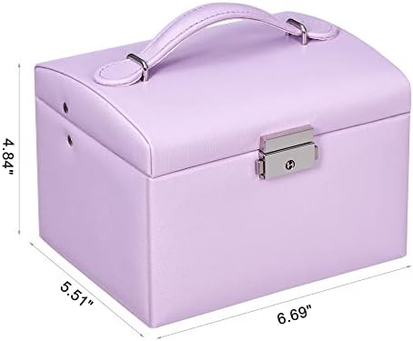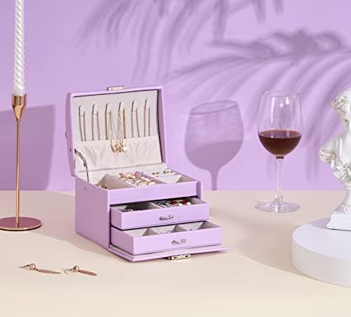 BEWISHOME Jewelry Box for Teen Girls,3 Layers Jewelry Organizer Box with Lock, Jewelry Travel Case for Women Girls, PU Leather Jewelry Boxes for Earrings, Rings, Necklaces Purple, SSH88P