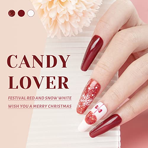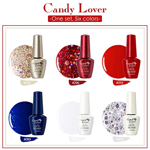 Candy Lover Glitter Gel Nail Polish Set 6 Colors Nail Gel Polish Set, Golden Snow White Red Silver Blue Color Series Glitter Soak Off Nail Art Kit Christmas Nails Gift for Girls Women