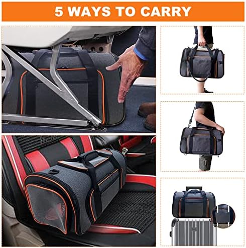🐇 5 METHODS OF CARRYING : ① Hand Carrying, ② Adjustable Shoulder Strap Carrying, ③ The Top of Suitcase, ④ Car Seat, ⑤ Under the Airline Seat. 💪 This pet traveling carrier bag is perfect for long trips, car rides, airline, vet visit, and etc.