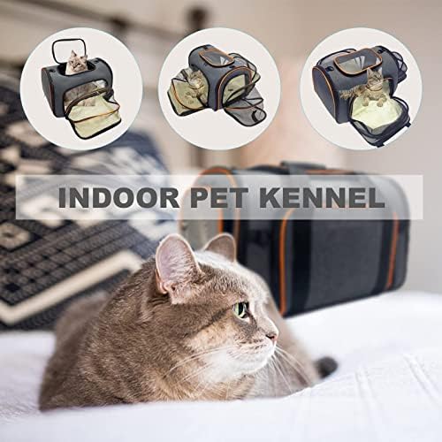 Cat Carrier, 3 Sides Expandable Foldable Pet Carrier for Medium Cat Small Dog, Airline Approved Soft-Sided Pet Travel Carrier Bag with Fleece Pad and Foldable Bowl