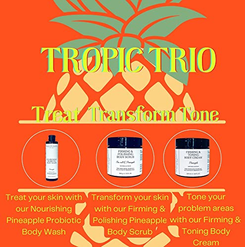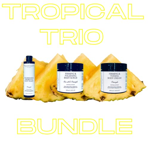 Delicate Daisys Botanical Beauty Tropic Trio Skin Care Collection Bundle | Nourishing Body Wash 8.45 fl oz | Pineapple Body Scrub 10 fl oz | Firming Body Cream 6.8 fl oz