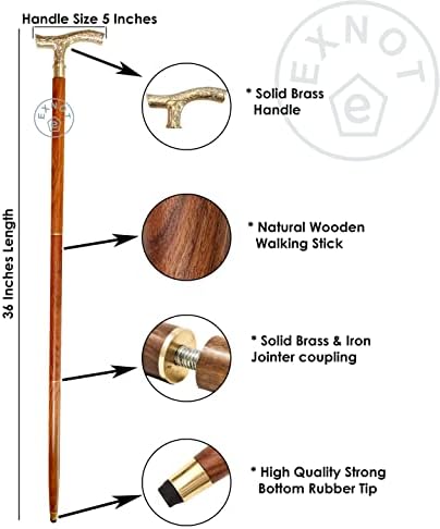 Be the first to review “EXNOT Walking Stick – Men Derby Canes and Wooden Walking Stick for Men and Women – 37″ Brown Ebony Brass T Shape Handle in Golden Tone Natural Wood Unisex Cane”