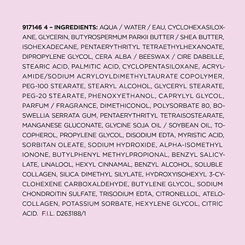 A dose of intense hydration and natural Collagen in Collagen Filler Moisture Day Lotion and Day/Night Cream is essential for younger-looking skin. Rich moisture instantly restores skin’s cushion and bounce. Over time, the powerful natural Collagen helps fill in lines and wrinkles, leaving your skin smooth and plump. Use it for a complete collagen-infused skincare regimen. In just 4 weeks 78% of women saw filled in wrinkles*. *Based on a consumer evaluation of 50 women. • Skin-Plumping Collagen • Intense Hydration • Smooths Wrinkles • Dermatologist-tested for gentleness Every night, smooth gently over the entire face after cleansing. For external use only. Avoid contact with eyes. Discontinue use if signs of irritation or rash appear. Keep out of sight of children.
