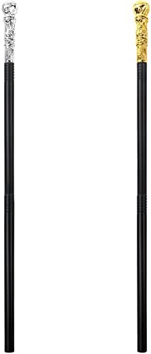 2 Pieces vintage walking cane Halloween, movies and modern drama role play prop, stick dress pimp canes vintage walking stick for adults kids costume accessories, silver and gold.