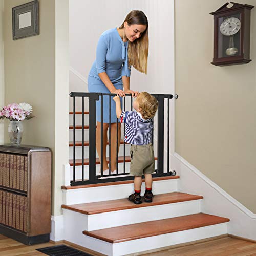 Mom’s Choice Awards Winner-Cumbor 29.5″-40.6″ Width Pressure or Hardware Mounted Auto Close Safety Baby Gate, Durable Extra Wide Dog Gate for Stairs, Doorways, Easy Walk Thru Pet Gate for House