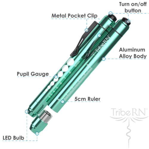 Penlights for Nurses – Medical Pen Light with Pupil Gauge for Doctors, EMTs, Nurses and Nursing Students – LED White Light and Warm Light – Essential Nursing Student Supplies, 2 Pack (Black/Mint)