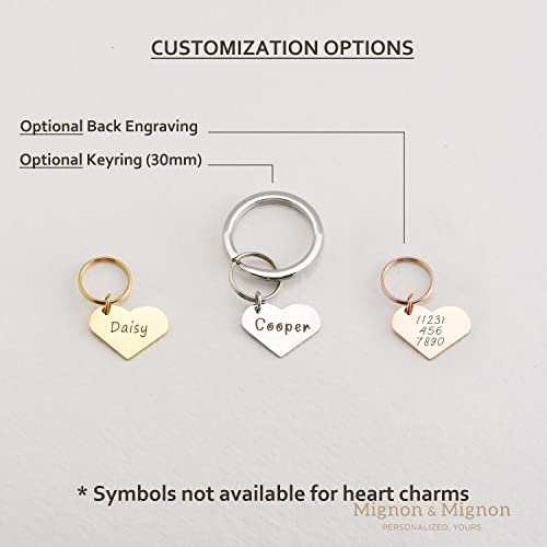 [Mignon and Mignon Pet Collar Charm Customized Option] You can personalize the ID tag with your choice of symbol with your pets name or short message you want on the front. With optional back engraving, you can leave affectionate messages for your loving pets or your contact information as missing prevention.