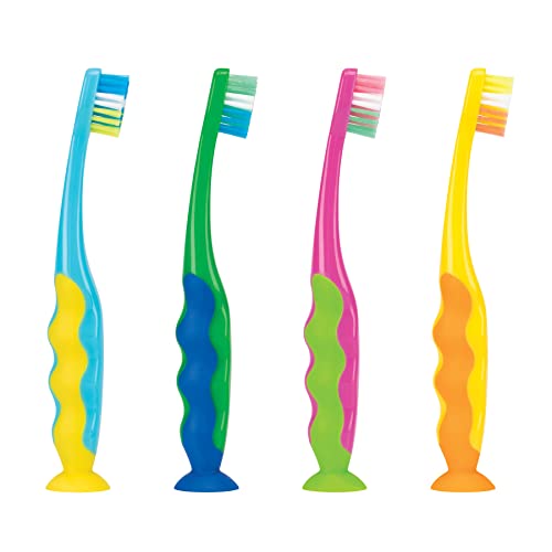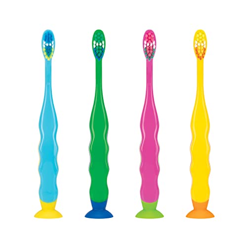 SmileGoods Y252 Child Toothbrush, 25 Tuft, Soft Bristle, with Contoured Grip & Suction Cup Base, 72 Individually Packaged Premium Toothbrushes, Assorted Colors Bulk Pack